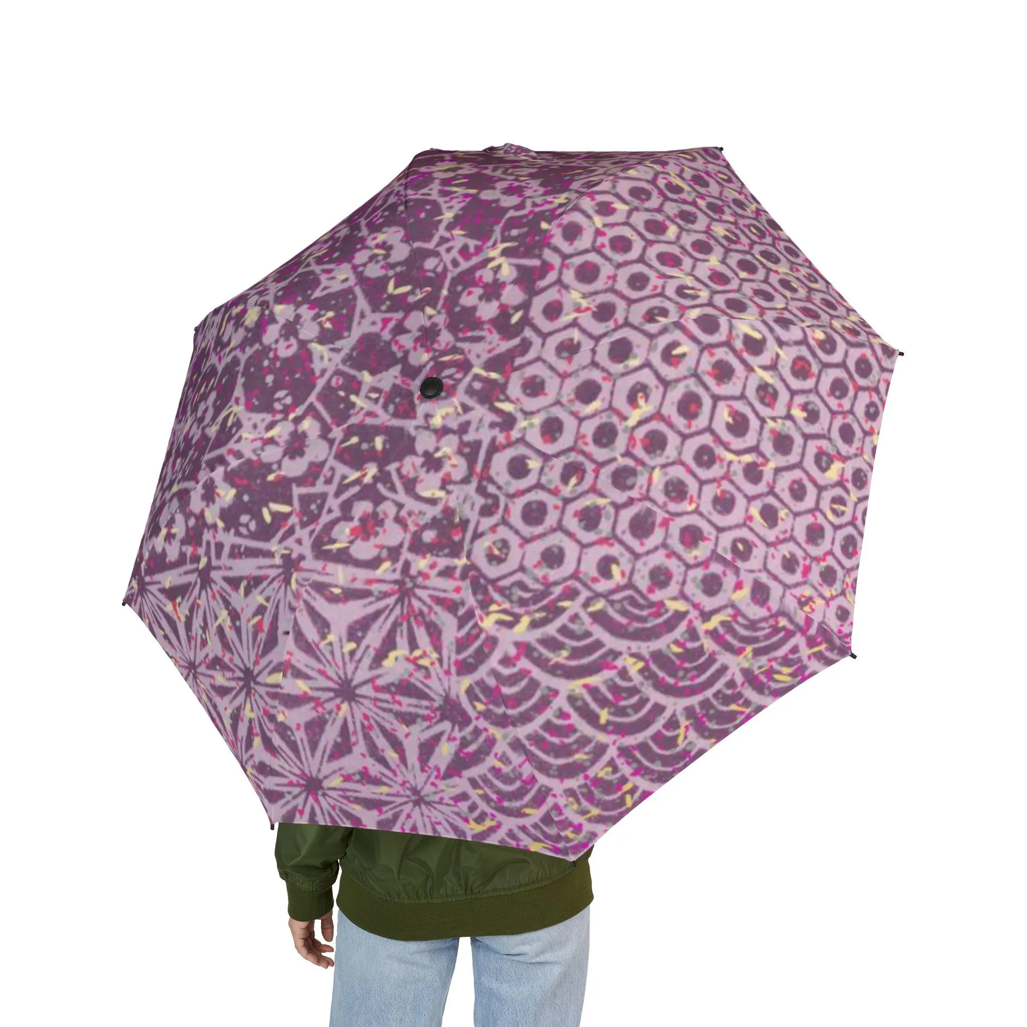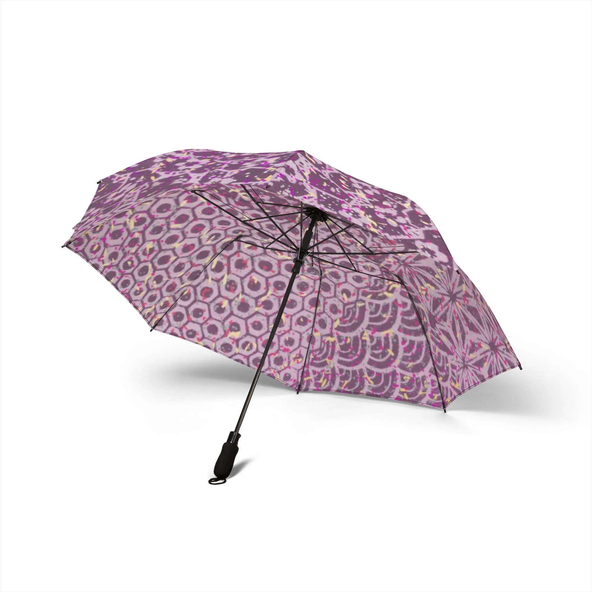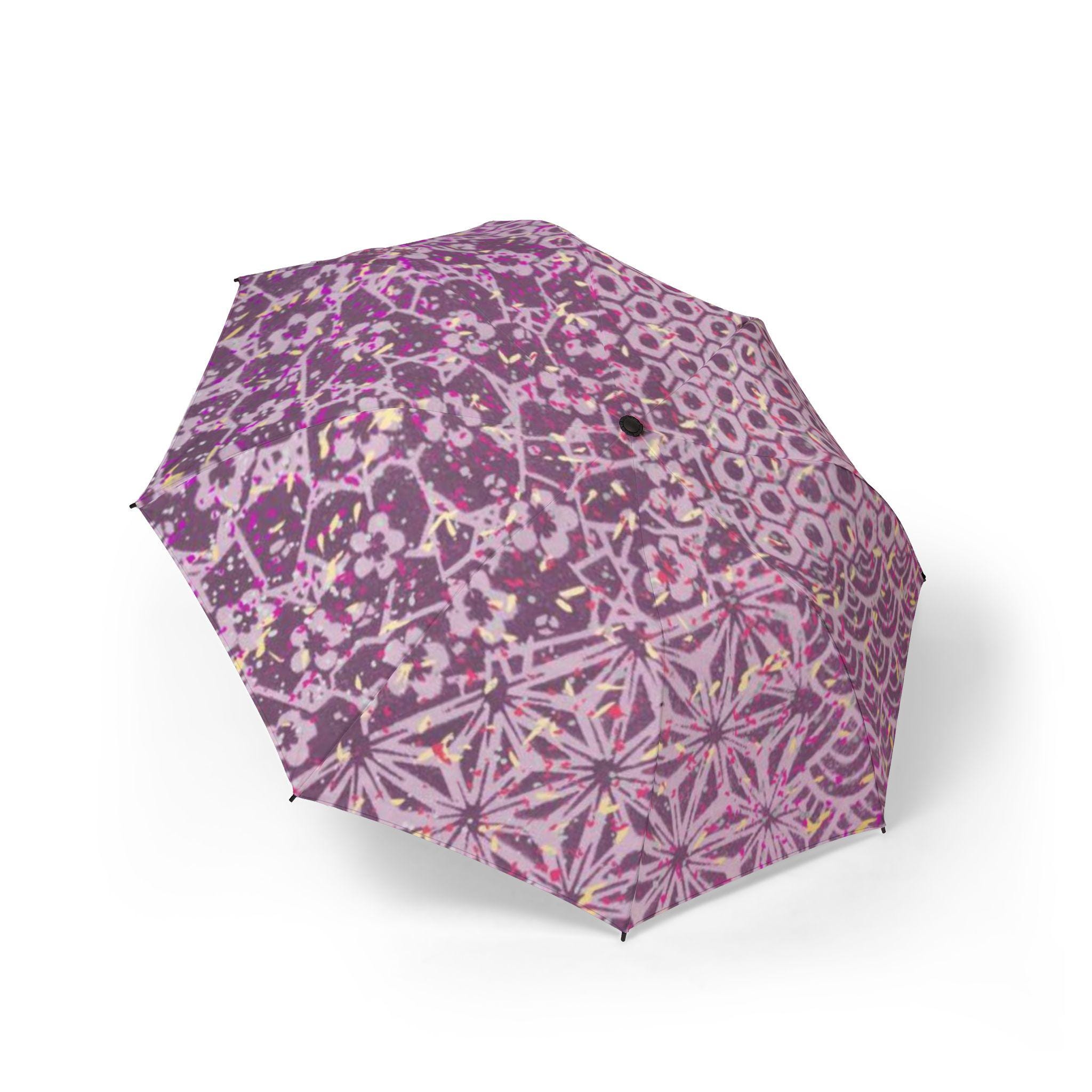 The umbrella surface reproduces the Bohemian pattern, the pink and purple background is like the twilight of the Sahara, and the geometric flowers and gilded totems are blurred, bringing the freedom and warmth of the Marrakech market into this mobile world.