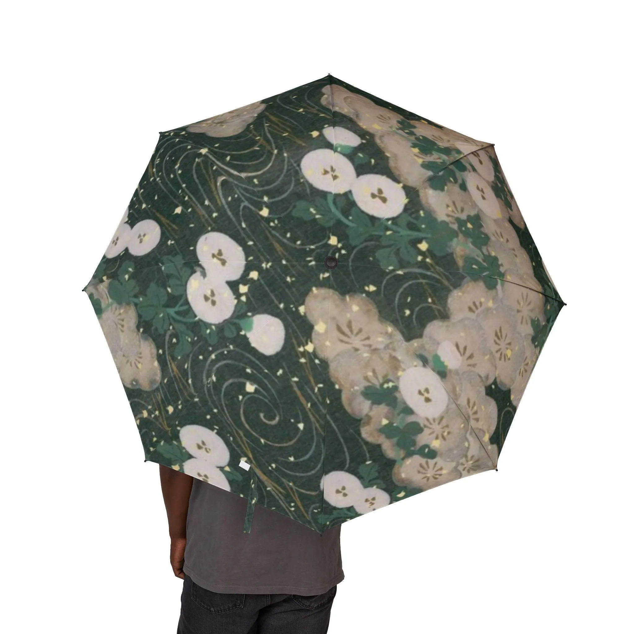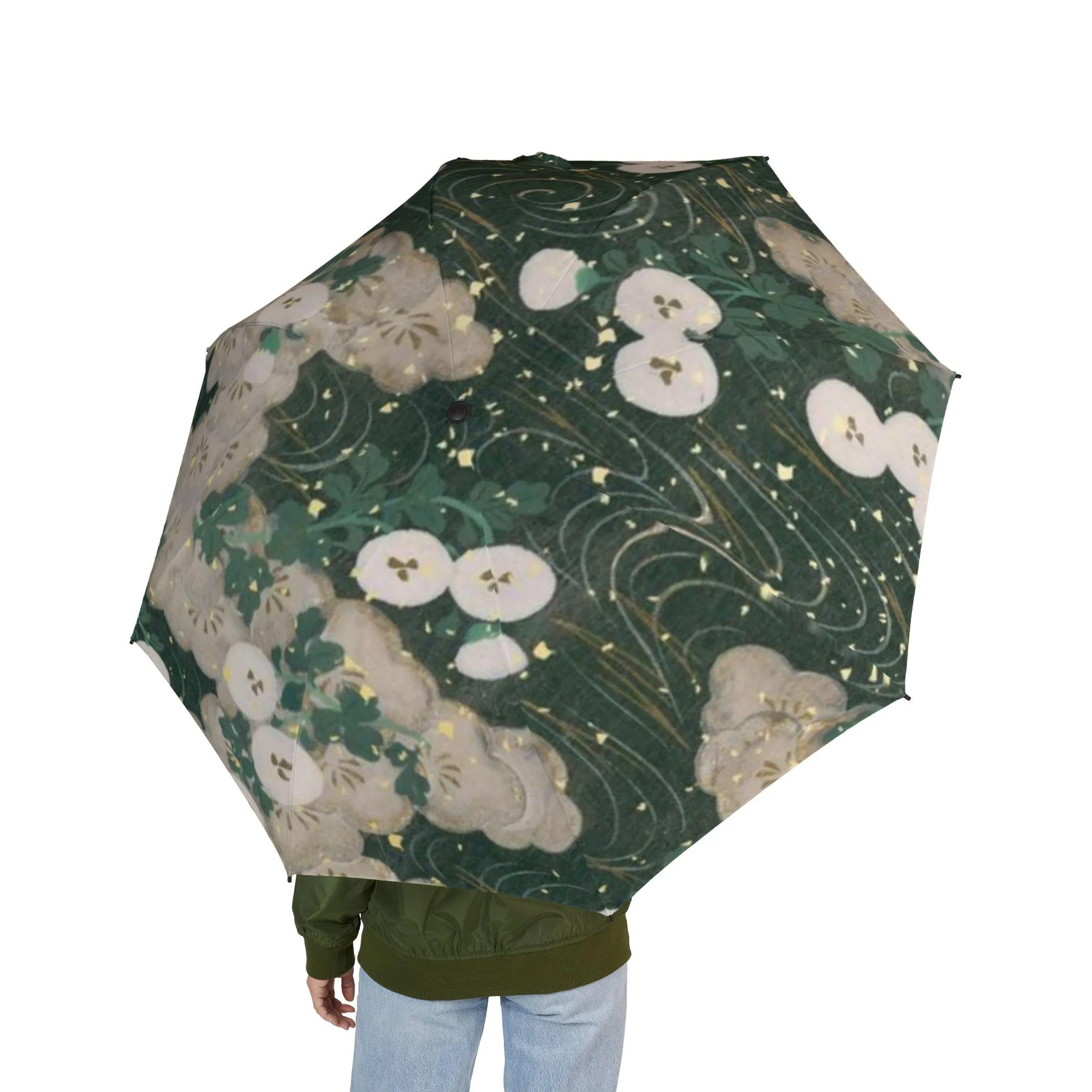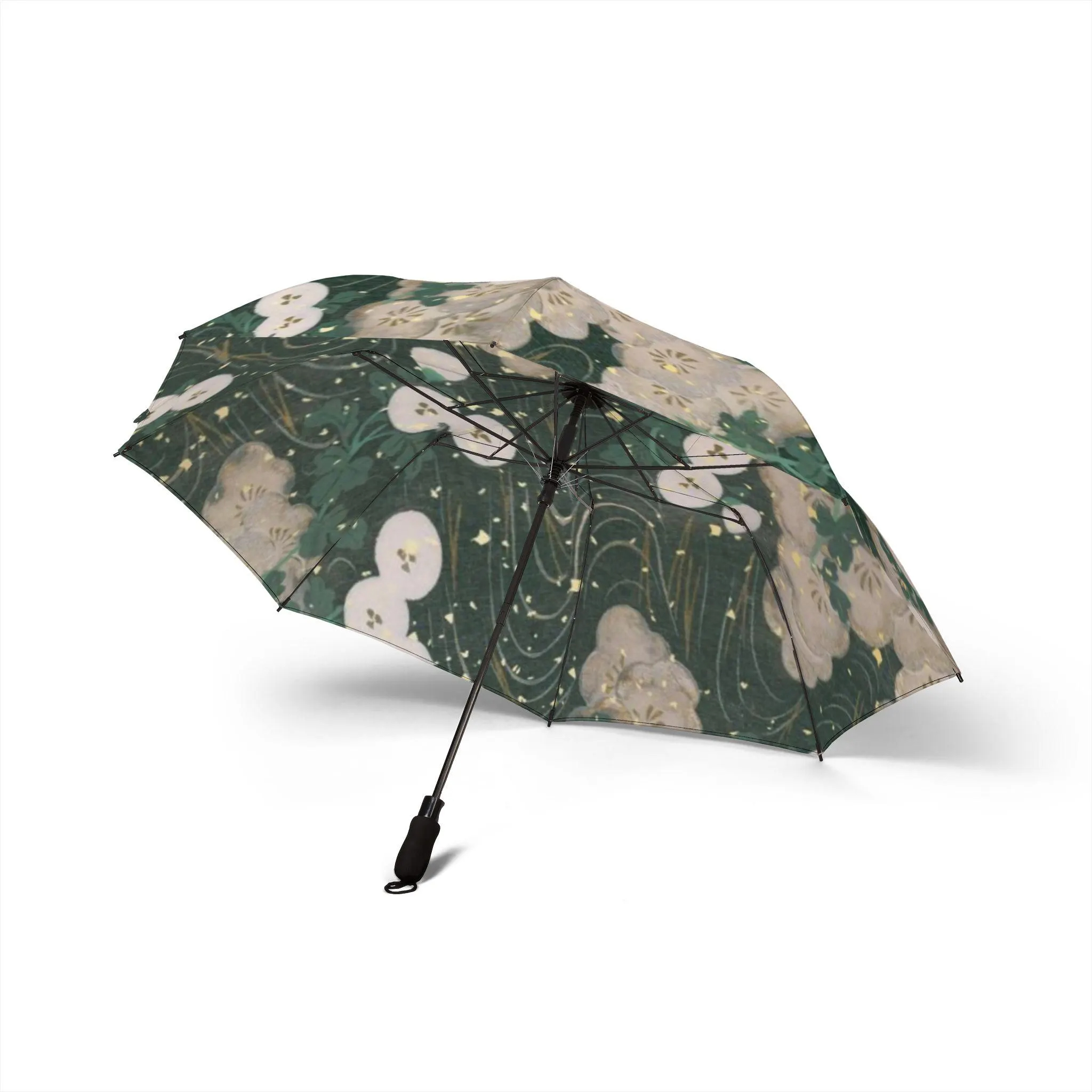 Using dark green as the base, it creates a retro oriental mood. The flowers on the umbrella are like light clouds, the petals are delicate, and the petals are decorated with smart gold powder. It is like the romance of spring flowers and summer night fireflies is collected in this small world. It has a sense of “walking in classical gardens”. The daily umbrella can also become a poetic easter egg in the outfit~