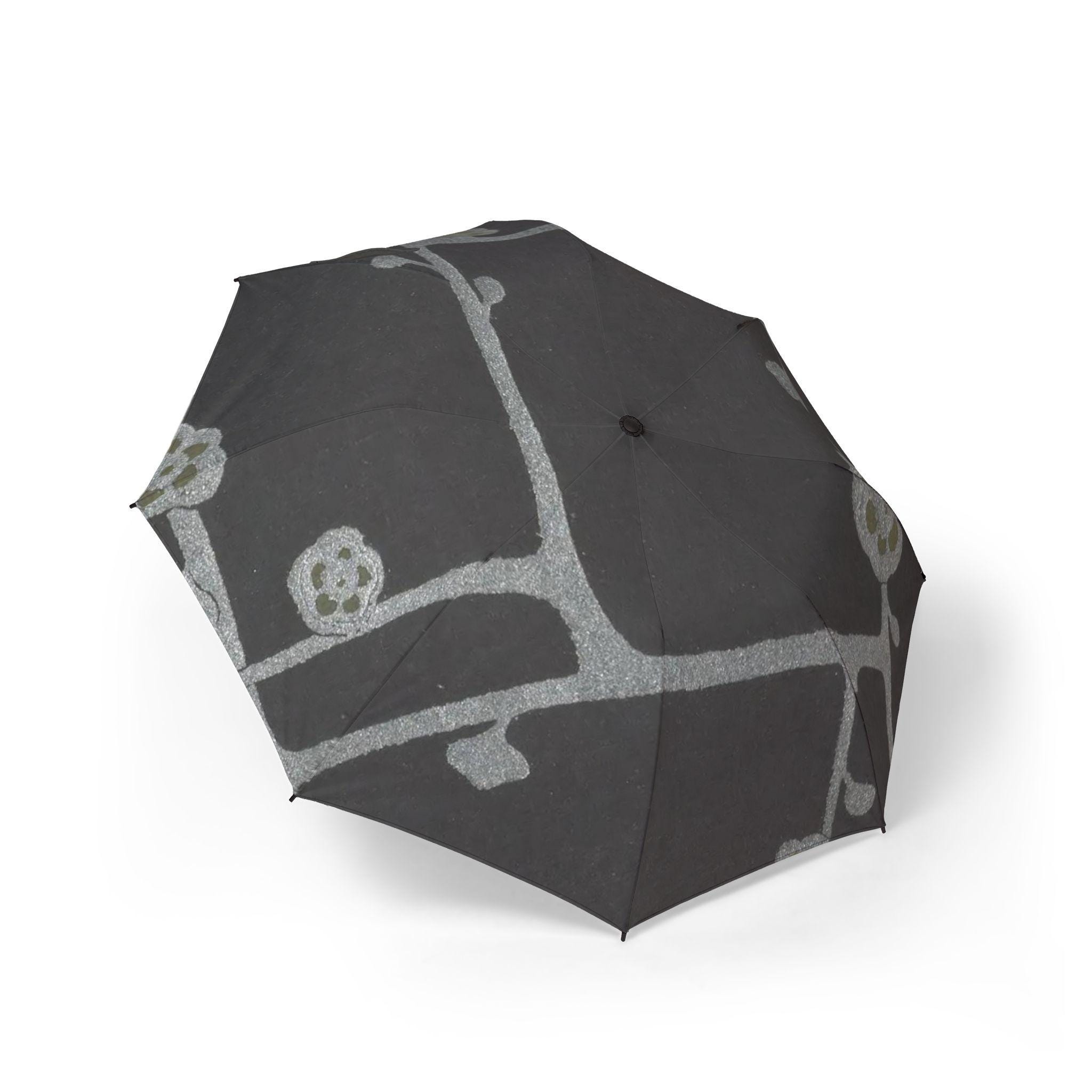 The umbrella surface reproduces Chinese ink brushstrokes, the ink-colored background is like the background of rice paper, and the silver branches and plum blossoms are blurred, bringing the cool Zen in literati paintings into this mobile little world.