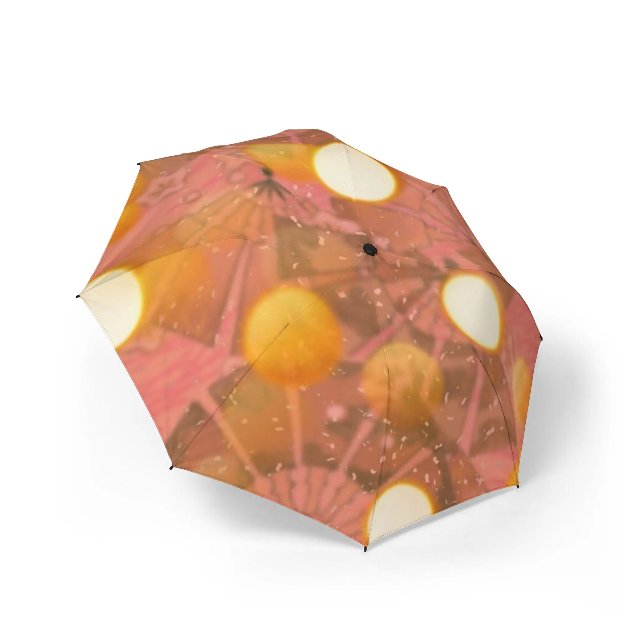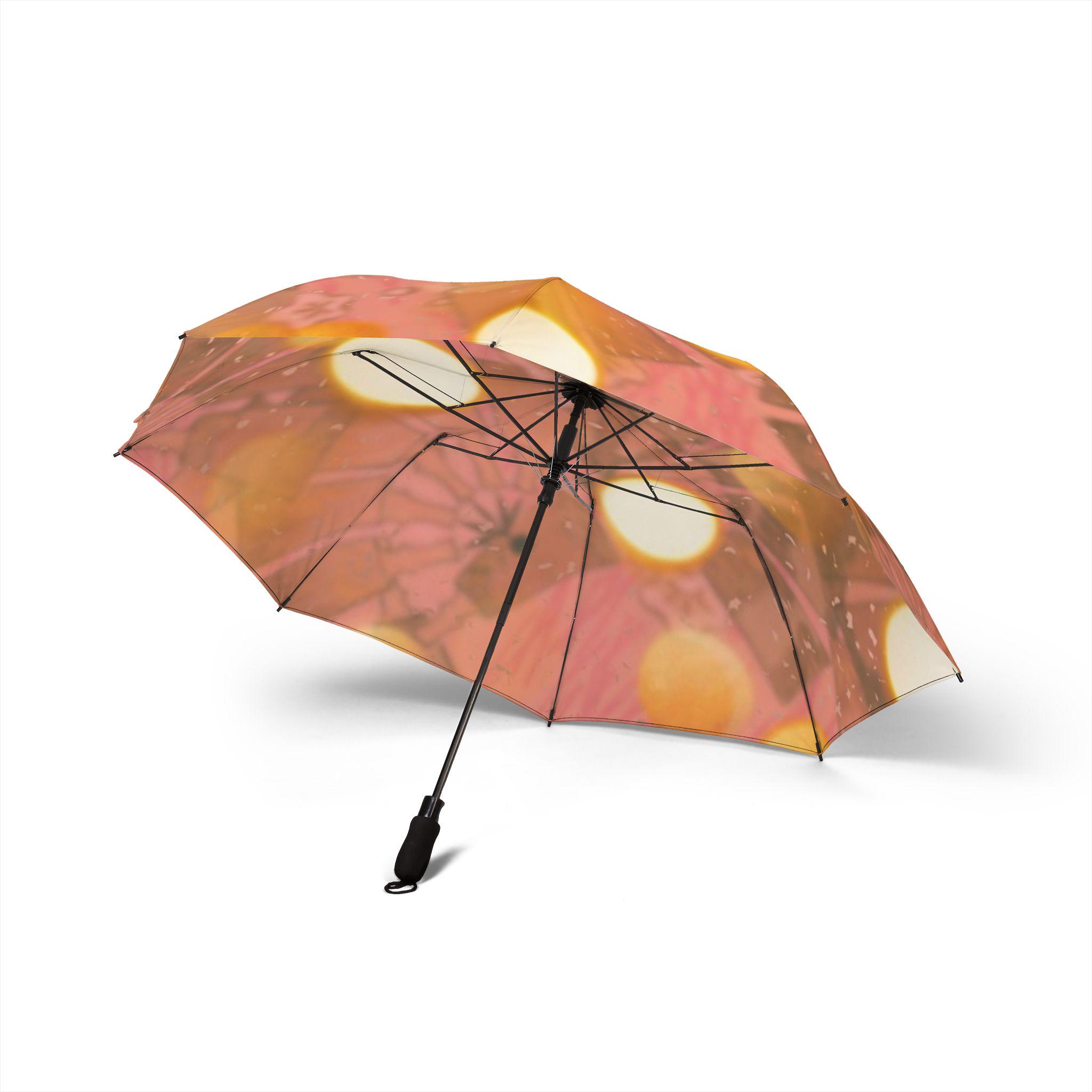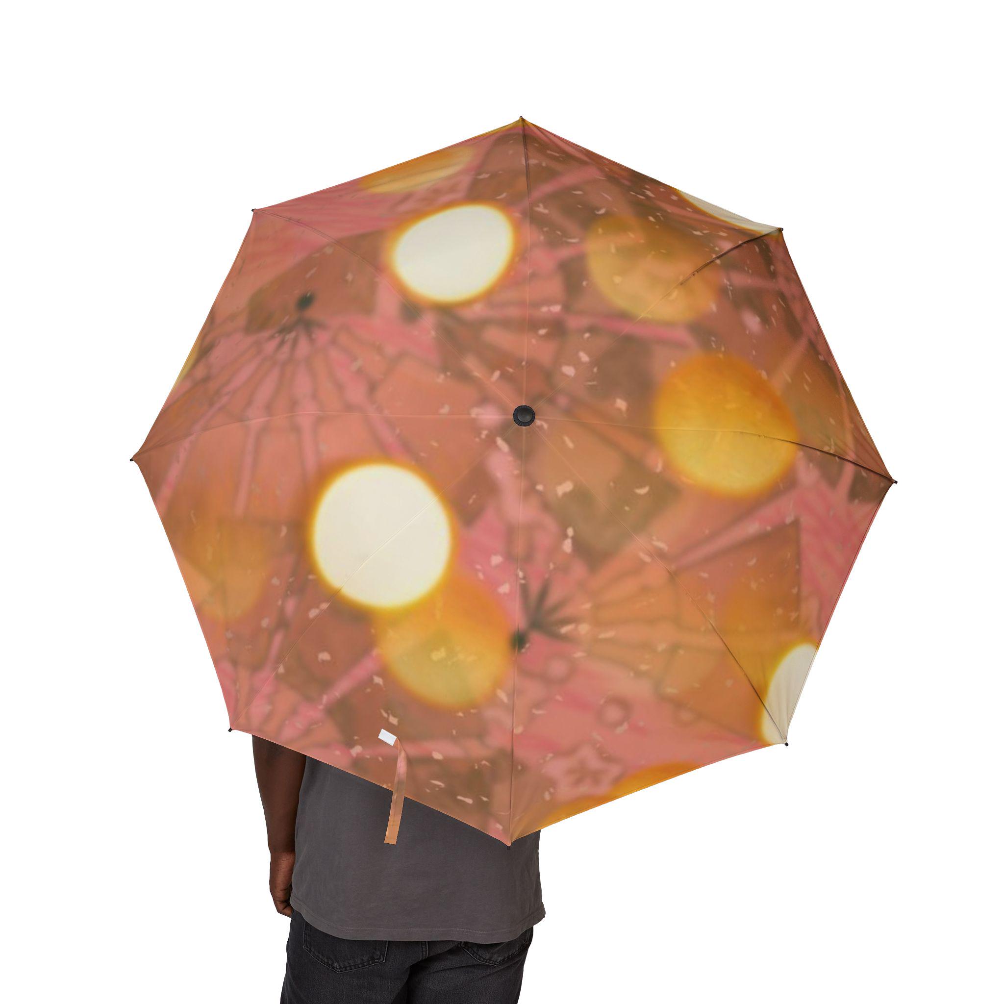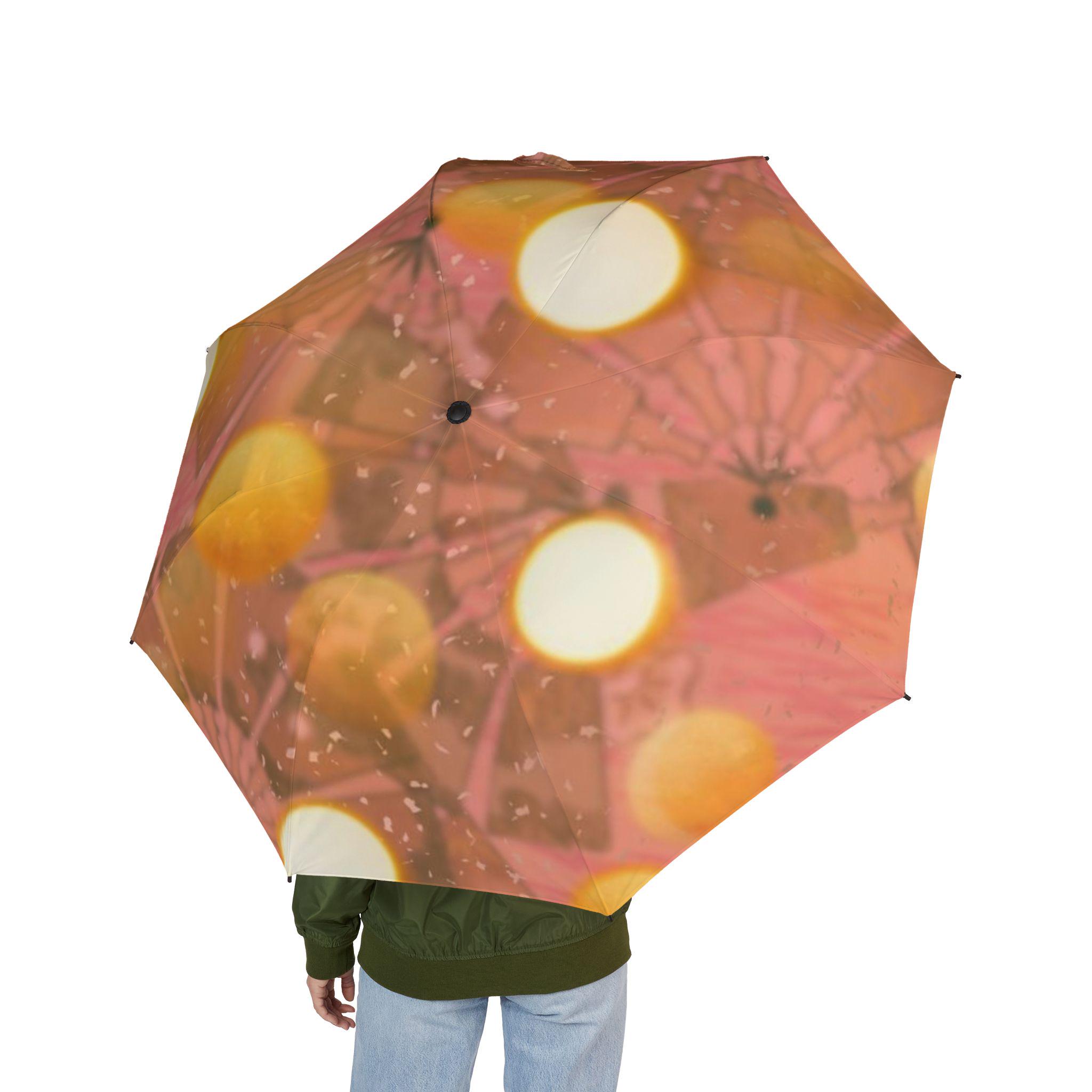The umbrella surface reproduces the imagery of Japanese summer festival fireworks and paper umbrellas. The main pink and orange tone is like the dusk of the evening festival. The circular light spots are the blooming fireworks. The outlines of the paper umbrellas are hazy and intertwined. The excitement and tenderness under the neon lights are all collected in this small umbrella. When it is opened, it has a “Kamakura summer” atmosphere.